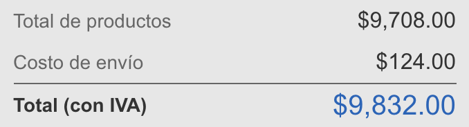 El costo de envío se calcula con base al peso y volumen total de los artículos que agregaste al carrito de compras. Si agregas dos piezas del mismo artículo no se cobrará el doble, sino que el costo se incrementará ligeramente.